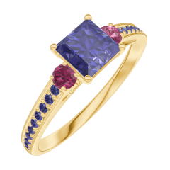 « L'ATELIER » NR. 163753Ring Gelbgold 750/-(18Kt) - Blauer Saphir Prinzess 0.5 Karat - Seitliche Steine Rubin - Fassung Blauer Saphir