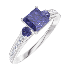 « L'ATELIER » NR. 163768Ring Weißgold 375/-(9Kt) - Blauer Saphir Prinzess 0.5 Karat - Seitliche Steine Blauer Saphir - Fassung Diamant