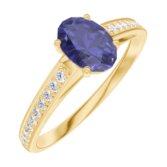 « L'ATELIER » NR. 163906Ring Gelbgold 375/-(9Kt) - Blauer Saphir Oval 0.5 Karat - Fassung Diamant 5