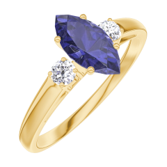 Ring Gelbgold 750/-(18Kt) - Blauer Saphir Marquise 0.5 Karat - Seitliche Steine Diamant