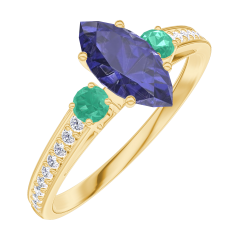 « L'ATELIER » NR. 164186Ring Gelbgold 375/-(9Kt) - Blauer Saphir Marquise 0.5 Karat - Seitliche Steine Smaragd - Fassung Diamant