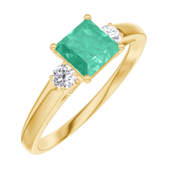 Ring Gelbgold 375/-(9Kt) - Smaragd Prinzess 0.5 Karat - Seitliche Steine Diamant