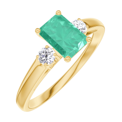 Ring Gelbgold 750/-(18Kt) - Smaragd Rechteckig 0.5 Karat - Seitliche Steine Diamant
