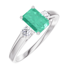 Ring Weißgold 375/-(9Kt) - Smaragd Rechteckig 0.5 Karat - Seitliche Steine Diamant