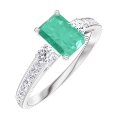 Ring Weißgold 750/-(18Kt) - Smaragd Rechteckig 0.5 Karat - Seitliche Steine Diamant - Fassung Diamant