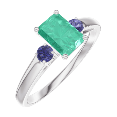 « L'ATELIER » Nº164463Ring Weißgold 750/-(18Kt) - Smaragd Rechteckig 0.5 Karat - Seitliche Steine Blauer Saphir