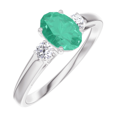 Ring Weißgold 375/-(9Kt) - Smaragd Oval 0.5 Karat - Seitliche Steine Diamant
