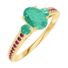 Ring Gelbgold 750/-(18Kt) - Smaragd Oval 0.5 Karat - Seitliche Steine Smaragd - Fassung Rubin