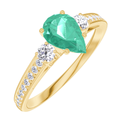 Ring Gelbgold 375/-(9Kt) - Smaragd Tropfen 0.5 Karat - Seitliche Steine Diamant - Fassung Diamant