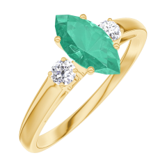Ring Gelbgold 375/-(9Kt) - Smaragd Marquise 0.5 Karat - Seitliche Steine Diamant