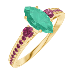 Ring Gelbgold 750/-(18Kt) - Smaragd Marquise 0.5 Karat - Seitliche Steine Rubin - Fassung Rubin
