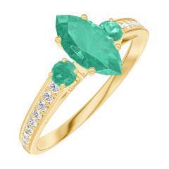 « L'ATELIER » NR. 164786Ring Gelbgold 375/-(9Kt) - Smaragd Marquise 0.5 Karat - Seitliche Steine Smaragd - Fassung Diamant