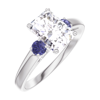 « L'ATELIER » Nº165064Ring Weißgold 375/-(9Kt) - Diamant Rechteckig 0.7 Karat - Seitliche Steine Blauer Saphir