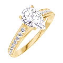 Ring Gelbgold 750/-(18Kt) - Diamant Tropfen 0.7 Karat - Fassung Diamant