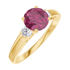 « L'ATELIER » NR. 165422Ring Gelbgold 375/-(9Kt) - Rubin rund 0.7 Karat - Seitliche Steine Diamant 5