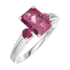 « L'ATELIER » NR. 165644Ring Weißgold 375/-(9Kt) - Rubin Rechteckig 0.7 Karat - Seitliche Steine Rubin
