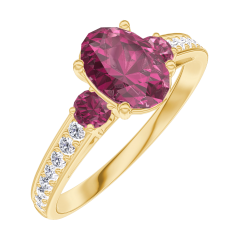 « L'ATELIER » NR. 165746Ring Gelbgold 375/-(9Kt) - Rubin Oval 0.7 Karat - Seitliche Steine Rubin - Fassung Diamant