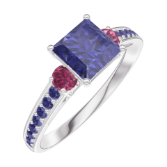 « L'ATELIER » NR. 166155Ring Weißgold 750/-(18Kt) - Blauer Saphir Prinzess 0.7 Karat - Seitliche Steine Rubin - Fassung Blauer Saphir