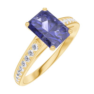 « L'ATELIER » Nº166206Ring Gelbgold 375/-(9Kt) - Blauer Saphir Rechteckig 0.7 Karat - Fassung Diamant