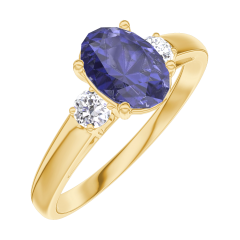 Ring Gelbgold 750/-(18Kt) - Blauer Saphir Oval 0.7 Karat - Seitliche Steine Diamant