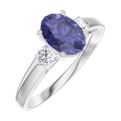 « L'ATELIER » NR. 166324Ring Weißgold 375/-(9Kt) - Blauer Saphir Oval 0.7 Karat - Seitliche Steine Diamant