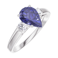 « L'ATELIER » NR. 166423Ring Weißgold 750/-(18Kt) - Blauer Saphir Tropfen 0.7 Karat - Seitliche Steine Diamant