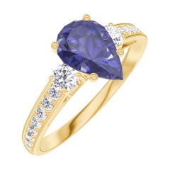 Ring Gelbgold 750/-(18Kt) - Blauer Saphir Tropfen 0.7 Karat - Seitliche Steine Diamant - Fassung Diamant