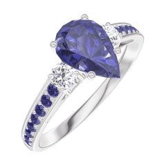Ring Weißgold 750/-(18Kt) - Blauer Saphir Tropfen 0.7 Karat - Seitliche Steine Diamant - Fassung Blauer Saphir