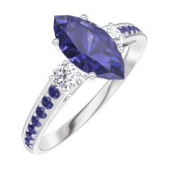 Ring Weißgold 750/-(18Kt) - Blauer Saphir Marquise 0.7 Karat - Seitliche Steine Diamant - Fassung Blauer Saphir