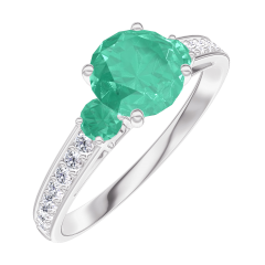 Ring Weißgold 750/-(18Kt) - Smaragd rund 0.7 Karat - Seitliche Steine Smaragd - Fassung Diamant