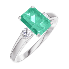 Ring Weißgold 375/-(9Kt) - Smaragd Rechteckig 0.7 Karat - Seitliche Steine Diamant