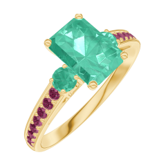 Ring Gelbgold 750/-(18Kt) - Smaragd Rechteckig 0.7 Karat - Seitliche Steine Smaragd - Fassung Rubin