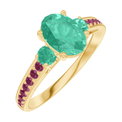 « L'ATELIER » NR. 166990Ring Gelbgold 375/-(9Kt) - Smaragd Oval 0.7 Karat - Seitliche Steine Smaragd - Fassung Rubin