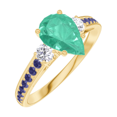 « L'ATELIER » NR. 167034Ring Gelbgold 375/-(9Kt) - Smaragd Tropfen 0.7 Karat - Seitliche Steine Diamant - Fassung Blauer Saphir