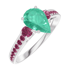 Ring Weißgold 375/-(9Kt) - Smaragd Tropfen 0.7 Karat - Seitliche Steine Rubin - Fassung Rubin