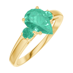 Ring Gelbgold 750/-(18Kt) - Smaragd Tropfen 0.7 Karat - Seitliche Steine Smaragd