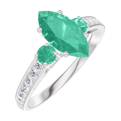 « L'ATELIER » Nº167187Ring Weißgold 750/-(18Kt) - Smaragd Marquise 0.7 Karat - Seitliche Steine Smaragd - Fassung Diamant