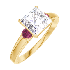 Ring Gelbgold 750/-(18Kt) - Diamant Prinzess 1 Karat - Seitliche Steine Rubin