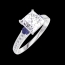 Ring Weißgold 375/-(9Kt) - Diamant Prinzess 1 Karat - Seitliche Steine Blauer Saphir - Fassung Diamant