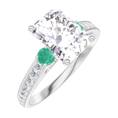 « L'ATELIER » Nº167488Ring Weißgold 375/-(9Kt) - Diamant Rechteckig 1 Karat - Seitliche Steine Smaragd - Fassung Diamant 4.6
