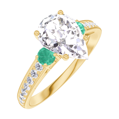 « L'ATELIER » Nº167685Ring Gelbgold 750/-(18Kt) - Diamant Tropfen 1 Karat - Seitliche Steine Smaragd - Fassung Diamant