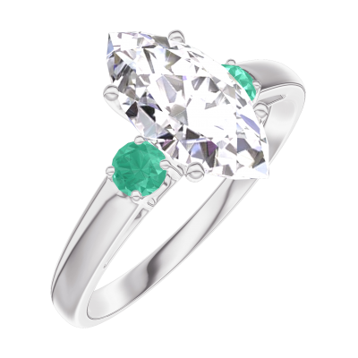 « L'ATELIER » Nº167783Ring Weißgold 750/-(18Kt) - Diamant Marquise 1 Karat - Seitliche Steine Smaragd