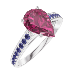 Ring Weißgold 750/-(18Kt) - Rubin Tropfen 1 Karat - Fassung Blauer Saphir