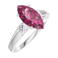 Ring Weißgold 375/-(9Kt) - Rubin Marquise 1 Karat - Seitliche Steine Diamant