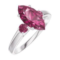 Ring Weißgold 750/-(18Kt) - Rubin Marquise 1 Karat - Seitliche Steine Rubin