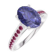 « L'ATELIER » NR. 168712Ring Weißgold 375/-(9Kt) - Blauer Saphir Oval 1 Karat - Fassung Rubin 4.8
