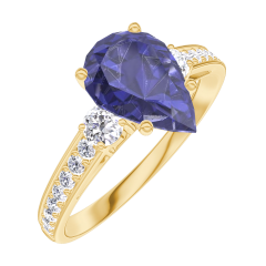 Ring Gelbgold 750/-(18Kt) - Blauer Saphir Tropfen 1 Karat - Seitliche Steine Diamant - Fassung Diamant