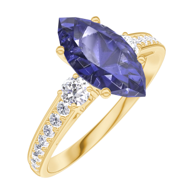 « L'ATELIER » Nº168926Ring Gelbgold 375/-(9Kt) - Blauer Saphir Marquise 1 Karat - Seitliche Steine Diamant - Fassung Diamant