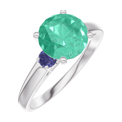« L'ATELIER » Nº169063Ring Weißgold 750/-(18Kt) - Smaragd rund 1 Karat - Seitliche Steine Blauer Saphir 4.9