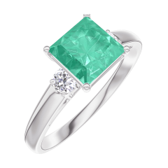 Ring Weißgold 750/-(18Kt) - Smaragd Prinzess 1 Karat - Seitliche Steine Diamant